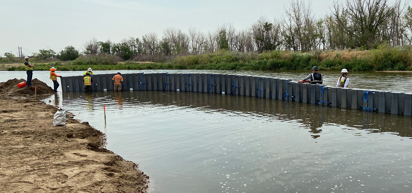 Muscle Wall is a modular, high-strength plastic barrier system designed for rapid deployment in flood control, stormwater management, and containment applications. Its L-shaped design is filled with water for ballast, allowing it to withstand the force of rushing or standing water while remaining easy to install, remove, and reuse. Muscle Wall offers scalable protection for a wide range of site conditions, including construction perimeters, roadways, and industrial facilities. Muscle Wall is FM Approved and meets ASCE 24-14 standards, making it a reliable alternative to traditional sandbags and concrete barriers. It has been used successfully for sediment control, erosion prevention, and emergency response, and is now approved by CDOT for flood protection. With its durability, reusability, and minimal environmental impact, Muscle Wall delivers a cost-effective and sustainable solution for water-related challenges.