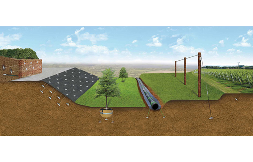 Earth anchoring systems are critical structural components used to secure erosion control materials—such as turf reinforcement mats (TRMs), high-performance TRMs (HPTRMs), and geosynthetic facings—to the ground. These anchors enhance the stability of erosion control installations, especially in high-shear environments like steep slopes, levees, channels, and shorelines. These systems are especially valuable in areas where vegetation alone cannot provide sufficient resistance to erosion or where traditional hard armor is too invasive or costly. Anchors are often used in conjunction with geotextile bags, geogrids, or modular block walls as well.